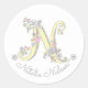 Pretty girls monogram name sticker ideal for embellishing books and to personalised girls items. Stickers reads N Natalie Nielsen or you can personalise with your own name or surname starting in N. Decorative capital letter N with hearts and flowers art © Designed by Sarah Trett www.sarahtrett.com for www.mylittleeden.com