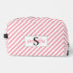 This charming monogram makeup bag features a serif initial alongside a script first name, making it a delightful accessory for her. With pink and white diagonal stripes, it will be the perfect addition to any little girl's room. Order yours today!