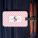 This charming monogram luggage tag features a serif initial alongside a script first name, making it a delightful accessory for her. With pink and white diagonal stripes, it's the perfect accessory for your luggage. Order yours today!