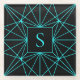 Initial Monogram | Turquoise Geometric Design Glass Coaster