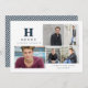 Initial multi photo graduate party invitation. Change the text and background colour. Part of a collection. Bold simple modern design. blue