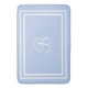 Add your initial or name to this baby blue bathmat. Available in different sizes. Matching shower curtain and bath towels available.