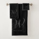 Initial Personalised Elegant Black Grey Monogram Bath Towel Set