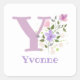 Initial Plus Name Yvonne & Flowers Design Square Sticker