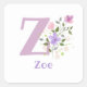 Initial Plus Name Zoe & Flowers Design Square Sticker