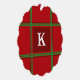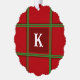 Initial Red and Green Plaid Simple Design Tree Decoration Card