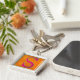 Photographic image of cloisonne initial. The original was created by carefully bending flat silver wire, fusing it to enameled copper then filing in the areas within the silver boundaries with ground coloured glass and firing each layer at 1350 degrees fahrenheit. Letter "S" is deep pink, background is bright orange.