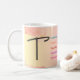 This design features a beautiful, hand-drawn letter "T" in black cursive on a stunning watercolor background. The left side showcases a warm yellow-to-pink gradient, while the right side displays a soft pink-to-yellow gradient. Surrounding the letter are vibrant words in various colours, including blue, orange, red, purple, and pink, highlighting positive traits starting with the letter "T". The overall effect is a visually appealing and uplifting design that celebrates the beauty of the letter "T" and its associated qualities. The watercolor background adds a touch of elegance and sophistication, making this design perfect for inspirational or motivational purposes.