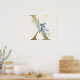 Clear image allows you to change your background if desired. I have uploaded a pebble flecked background for viewing purposes. An elegant golden alphabet of traditional typeface adorned with graceful teal and smokey blue watercolor flowers and leaves, available in every feasible letter.
