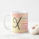 This mug will be a favourite for everyone from your sweet grandma to your teenage sister. With the right message, a mug can become anyone’s treasured companion for years to come. This design features a beautiful, hand-drawn letter "X" in black cursive on a stunning watercolor background. The left side showcases a warm yellow-to-pink gradient, while the right side displays a soft pink-to-yellow gradient. Surrounding the letter are vibrant words in various colours, including blue, orange, red, purple, and pink, highlighting positive traits starting with the letter "X". The overall effect is a visually appealing and uplifting design that celebrates the beauty of the letter "X" and its associated qualities. The watercolor background adds a touch of elegance and sophistication, making this design perfect for inspirational or motivational purposes.