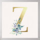Initial Z Golden and Blue Floral Monogram Poster