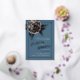 Inked art rose gold foil on teal blue grey floral wedding invitation. Personalise with your own wedding details and a photo of your couple on the back. If you have any questions or need help or other wedding items and colour options in this style are available and can also be created on request, please contact me. Unique hand drawn camellia inked sketch art design by Sarah Trett for www.mylittleeden.com