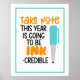 This playful and motivational design features the phrase “TAKE NOTE THIS YEAR IS GOING TO BE INK-CREDIBLE” styled with bold, upbeat typography. Orange highlights on “TAKE NOTE” and “INK” add vibrancy and emphasis, while a turquoise pen illustration brings a creative flair to the composition. Framed with a matching turquoise border, the overall aesthetic is clean, encouraging, and ready to inspire. Ideal for customisable educational, planner, or back-to-school themes that celebrate fresh starts and creative momentum.