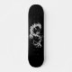 decorative black and white design of an abstract tribal dragon on a skateboard