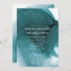 An abstract background reminiscent of liquid ink in shades from deep teal through cyan and white is the backdrop for elegant handwritten script text and modern design layouts in the pieces of this beautiful wedding suite. The wedding invitation shown here features the above and a template to add your own pertinent event information. Search ID762 to see all the coordinating pieces in this set.