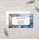 This business card is shown in a blue and grey colours ink swirl art print.