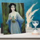 Ink Wash Illustration of Beautiful Woman in Woods Plaque