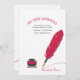 A moving announcement with a red quill and inkwell against a white background. A classic and elegant way to announce that you have moved. (<a href='http://www.freepik.com/free-vector/background-with-inkwell-and-pen-of-world-press-freedom-day_1097013.htm'>Designed by Freepik</a>). <br/><br/>The card is easy to customise with your wording, font, font colour, paper shape options and choice of six paper types.<br/><br/>Not exactly what you're looking for? All our products can be custom designed to meet your needs at no extra charge.<br/><br/>Simply contact us at heartfelthelper@gmail.com.<br/><br/>Coordinating products available: Just ask us!