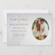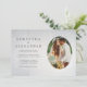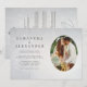 Choose this unique minimalist wedding invitation template featuring a sleek, classic lettering and one of your favourite engagement photos in an oval frame on a delicate, light silver floral background.