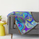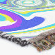 A quality printed throw has its advantages. This is a much finer weave throw than its loopier cousins, and though lighter, it is worth the investment for custom room accessorizing. The back is much prettier than the typical brown, and the fringe on the long sides very vivid, the selvage nicely done. Before photographing, I washed the throw in cold water, delicate, with a thicker woven throw the same size. On tumble dry low, this throw was dry in half the time as the other. This is a very practical quality if you use throws for furniture covers or to wrap up in frequently. The sleekness of the fabric makes it a great layer for accenting or protecting without the feeling of sitting on too much stuff. Perfect for napping or when you feel a light chill coming on. The color printing is beautiful and on this fabric, matched the design and color of my Photoshop image. This is an advantage for blending room fabrics and colors. The fringe on the short sides prints the colors from the design image and therefore varies from the side fringe. I streaked a white fractal line through the plaid pattern to give the illusion of weaving. This printed as crisp as an illusory thread, and put some white in the short side fringe, showing another advantage of print vs loomed- for artistic purposes, line lines, detail, and color integrity can be planned and preserved. My loomed throws have color limitations and more of a needlepoint texture. Print throws reproduce an exact image. The throw felt a little stiff straight out of the package, but this went away in the first delicate wash. Of course I searched the wash water for ink or bleeding and there was none.