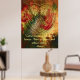 The symbol of the heart, harp vibrates through spirals and treble clefs about the foundation. The heart is filled with the song of belonging. The symbolic art expressed by the design is a simple to use centring tool. The space within the geometric lines helps to stay tuned with the guidance of the intuitive inner voice. The art is a magnet for well-being and a everyday life enhancer for home and therapeutic/creative work spaces. Hand drawn and merged in mixed media, printed in light gold coloured lines on a background of red, green and golden tones.