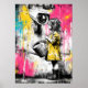 A contemporary conceptual artwork portraying a childlike figure watering the ground beneath a large observing presence. The expressive illustration uses strong contrasts, textured brushwork, and bold color accents to explore themes of innocence, awareness, and modern life. Designed as thought-provoking wall art for contemporary interiors, creative spaces, and collectors of symbolic visual art.