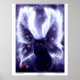 A black fairy cat with purple glowing wings against a starry background. Innocence Fairy Cat by Michaeline McDonald. Artwork copyright © Michaeline McDonald.