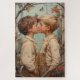 A heartwarming and tender scene depicting two young boys sharing an innocent kiss amidst a backdrop of apple-laden branches and fluttering butterflies. Captured in a style reminiscent of Norman Rockwell and J.C. Leyendecker, this artwork exudes charm and nostalgia, celebrating the purity and beauty of childhood.