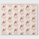 Wrapping paper with a pattern of an image of a beautiful brown doe with white spots on her fur. A cute bird sitting on the deer's back. An elegant flower arrangement composed of watercolor roses and light green leaves. A peach coloured background along the bottom. Darling and adorable design.