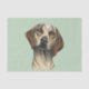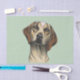 This is a drawing of a hound with brown eyes looking inquisitively towards you. He is slightly tilting his head. This was hand drawn with pencil and then coloured digitally with pastel.