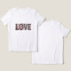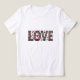 "Love" is creatively displayed in ornamental letters with intricate patterns and heart designs. The background is a muted gray, highlighting the colorful hearts and decorative details.
