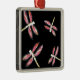 Hanging ornament with pretty pink dragonfly flying around on a black background. The dragonflies are from my original bug glass painting ©Annabel Potter