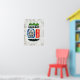 A drawn beetle is centrally featured within a blue, rough-edged rectangle, flanked on the right by a red, vertical stripe decorated with red and orange flowers. Above and below are end caps in green and black and white dots.