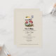 Nature Baby Shower invitation featuring illustration of two mushrooms surrounded by butterfly, insect, and snail.
