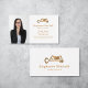 Luxury Professional business card for Real Estate Agents and Realtors, with key and a house in gold colour. You can add or insert your photo