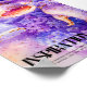 A vibrant, pixelated abstract artwork featuring a blend of purples, pinks, and oranges, creating a dynamic and fluid composition. The design includes the bold word "INSPIRATION" and a thought-provoking quote: "A painter shows you what he painted, but an artist shows you why he painted..."