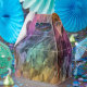 Alternating, hazy rainbow rocky facets in an all-over screen-printed mini-mosaic texture.