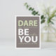 Motivational inspirational words: "Dare to be who you are" on a dark grey background. Motivational words of wisdom. In this world, where we are constantly bombarded by the "rules" and trends and media information about how and who we should be and think, people can sometimes lost the courage to be their true self. But that's not ok, everyone should be brave enough to be exactly what they are. Because only to live by their true potential people can make this world a better and more sincere place to be. So dare to be who you are, because you are beautiful, special and unique, a true masterpiece and this world needs you exactly the way you truly are. So don't try to hide all this behind some artificial shell and mask other people tried to create for you.