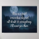 Inspiration - There is a field somewhere beyond all doubt and wrongdoing. I'll meet you there. Derived from Rumi poem. In white script font with black shadow. Set on a night image of a field landscape with trees a night full moon.