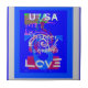 White: Employed for the "USA" and "LOVE" text, offering a strong contrast against the blue background, ensuring the words stand out prominently.