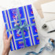 Blue: The dominant colour used for both the background and the border, varying in shade and intensity to create depth and visual interest.