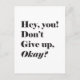 Hey, you! Don’t Give up, Okay? The design features stylised lettering in Black. This is Motivational Quote! It is a perfect present for someone who needs some encouragement