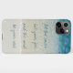 Contemporary teal turquoise blue ocean surf waves and beach shore. With fun 'LET THE WAVES HIT YOUR FEET, AND THE SAND BE YOUR SEAT' text quote. Beautiful, modern, and cool cover for the trend-savvy and art-loving hip trendsetter, artsy motif lover who wants to protect their phone from dust and dirt, wear and tear. This design is available Apple iPhone 6, 7, 8 Plus, 10 or X, XR, XS, 11, 12, and 13 Mini, 14, 15 Plus, and Pro Max cellphone cases. Show off your style, look fashionable trendy, and feel stylish with a unique design on a mobile device accessory of your choice.