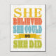 Inspirational Art - She Believed, She Did Postcard