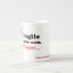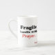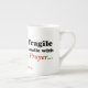 This mug is imprinted with a Bach Solos Suite for Cello. It was purchased as a thank you gift for a professional cellist friend who often performs this work. The cup is made of a high-grade ceramic and is fairly light. The walls are not too thick and it is a small to medium size. It's well finished, has a high-gloss glaze, and looks very elegant. The Bach Solo Suite score on the example I received was clear and had high contrast. Even though the staffs were small, the music was easy to read. The cellist who received this cup immediately knew what the music was as soon as she set eyes on it.