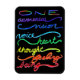 The refrigerator magnet features the rainbow coloured word "ONE". Beneath the word "one" are chakra energy centres coloured words of "awareness" (violet), "vision" (indigo), "voice" (light blue), "heart" (green), "thought" (yellow), "feeling" (orange), and "being" (red). This magnet can be customised with your own options to make personalised spiritual awareness art gifts!