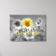 Inspirational Choose to Shine Quote with Sunflower Canvas Prints. Black and white canvas print with one bright yellow sunflower standing tall, featuring the quote/affirmation 'choose to shine'.