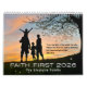 Inspirational Christian Family Name 2026 Calendar designed with the theme Faith First for Christians. As a way to honor Jesus and his connection with us, this calendar is designed with an inspirational image and Bible Scripture on each page. Be inspired as you turn from month to month with the infallible word of God. To personalize with your Family Name simply insert your text into our easy template, replacing the sample. Makes a wonderful addition to your home or office, as well as a great gift for friends and family.