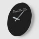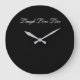 A designer clock in a modern black and white design. The black background can be personalised to any colour along with the inspirational message of laugh, love and live, or text is removable.