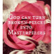 Inspirational God Quote Masterpiece. Beautiful floral background with black and white floral edges with one single pink rose in the centre. With the encouraging quote, "God can turn the broken pieces into Masterpieces" Inspirational, motivational Christian quote. More at our Store Front below : Quote Life.